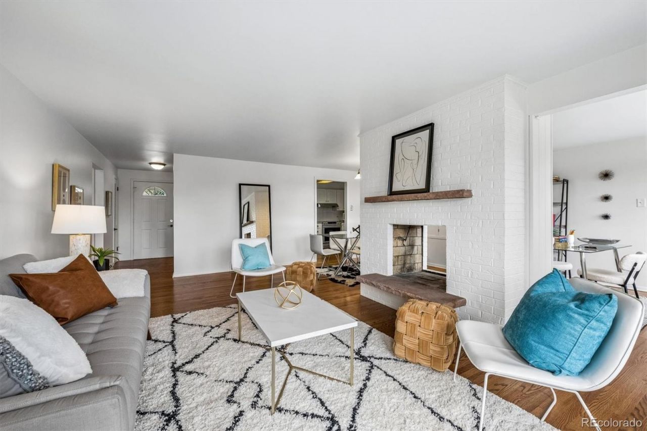 Charming ranch in highly sought-after Harvey Park, just steps from Loretto Heights Park! This 3-bedroom, 2.5-bath home is perched above neighboring homes, offering an elevated setting and inviting neighborhood views. Inside, the bright and sunny main level features formal living and dining rooms, plus a den perfect for everyday living and entertaining. Enjoy a cozy wood-burning fireplace on the main floor, complemented by newly refinished hardwood floors and fresh interior paint throughout. The eat-in kitchen includes all appliances, abundant cabinetry, and generous counter space. Step out to the back porch for easy summer gatherings, overlooking the fenced yard ideal for kids and pets. The spacious primary suite includes a private half bath. The finished basement adds a large family and rec room with a second wood-burning fireplace, along with a 3/4 bath and an additional bedroom?perfect for guests, movie nights, or play space. Additional updates include new carpet and fresh interior paint, making this home truly move-in ready. Enjoy an unbeatable Southwest Denver location with quick access to major roads, Highway 285, shopping, dining, and the foothills. A wonderful place to call home!