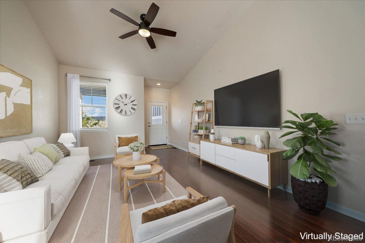 Perched above the street, this inviting home captures sweeping outlooks across the park and rolling hills beyond, creating a sense of space, light and everyday escape. The cheerful, tidy exterior and welcoming front porch set the tone for relaxed living, with a perfect vantage point to soak in the peaceful surroundings. Inside, the home opens into a light-filled main living area where vaulted ceilings enhance the feeling of openness and calm. Wide plank style floors flow underfoot, adding warmth and style, while the layout invites both quiet moments and easy entertaining. The kitchen is both functional and striking, featuring stylish black cabinetry, stone benchtops, stainless steel appliances and a central island where conversations naturally gather. The dining area is framed by a charming bay window. From the kitchen, step directly out to the sunny rear deck, an ideal setting for weekend barbecues, morning coffee or unwinding at the end of the day. The primary bedroom is a peaceful retreat, perfectly positioned to enjoy calming views over the nearby park. It includes a well-appointed ensuite with twin vanities, creating a practical and comfortable private space, plus here is a walk-in closet. Two additional bedrooms are thoughtfully separated and share a fresh, modern bathroom, making the home ideal for families, guests or a flexible work-from-home setup. A small, easy-care yard offers just the right amount of outdoor space for pets or play, while the dual street frontage and rear-access double garage add convenience and functionality. Set within the highly sought-after Meadows community in Castle Rock, residents enjoy access to a pool, clubhouse and beautifully maintained surroundings. With shopping, dining and the charm of Old Town Castle Rock just minutes away, this location delivers a lifestyle that balances connection, comfort and natural beauty.This is a home that feels good the moment you arrive, and even better once youre living in it.